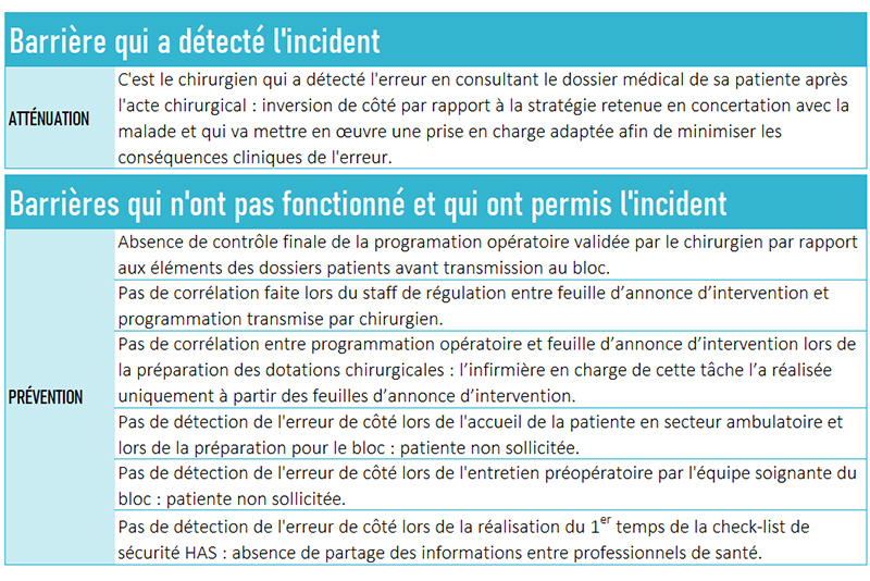 Il est important de mettre en évidence les barrières de défenses qui ont été déficientes.
